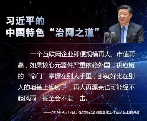 互联网核心技术是我们最大的“命门”,核心技术受制于人是我们最大的隐患。一个互联网企业即便规模再大、市值再高,如果核心元器件严重依赖外国,供应链的“命门”掌握在别人手里,那就好比在别人的墙基上砌房子,再大再漂亮也可能经不起风雨,甚至会不堪一击。我们要掌握我国互联网发展主动权,保障互联网安全、国家安全,就必须突破核心技术这个难题,争取在某些领域、某些方面实现“弯道超车”。