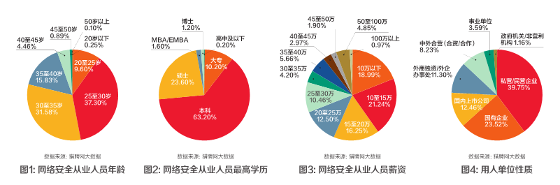 用人单位: 从用人单位性质来看,网络安全人员在私营企业工作居多,占比39.7%;其次是国有企业,占比23.5%。民营企业目前是网络安全人才需求的主流(见图4)。